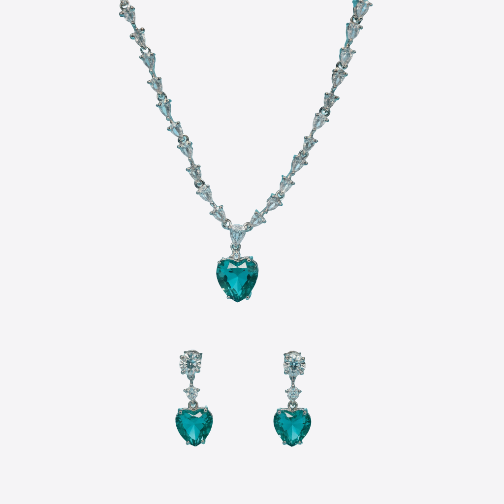 XZ60/1 Green & Red Stones Necklace & Ear Rings Set